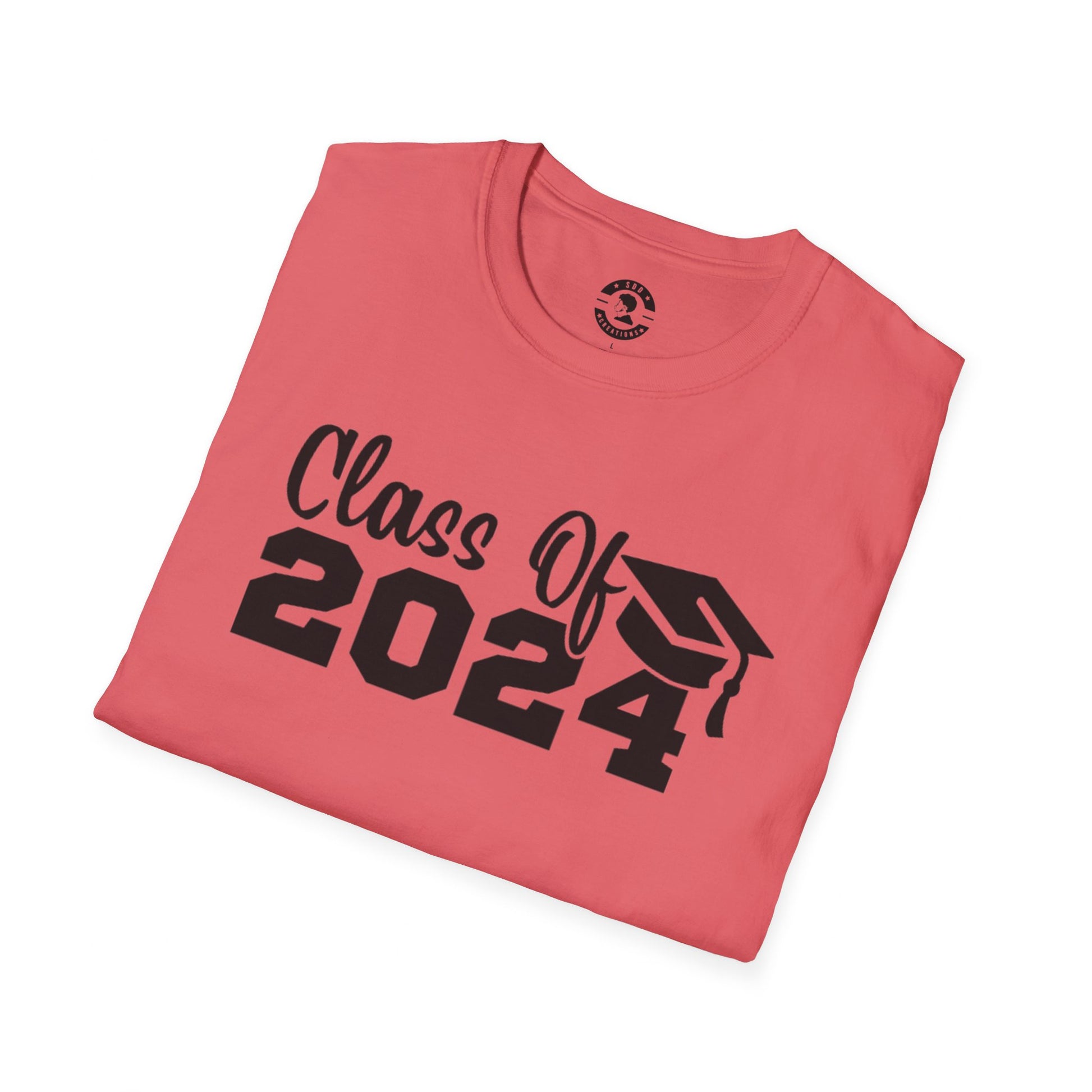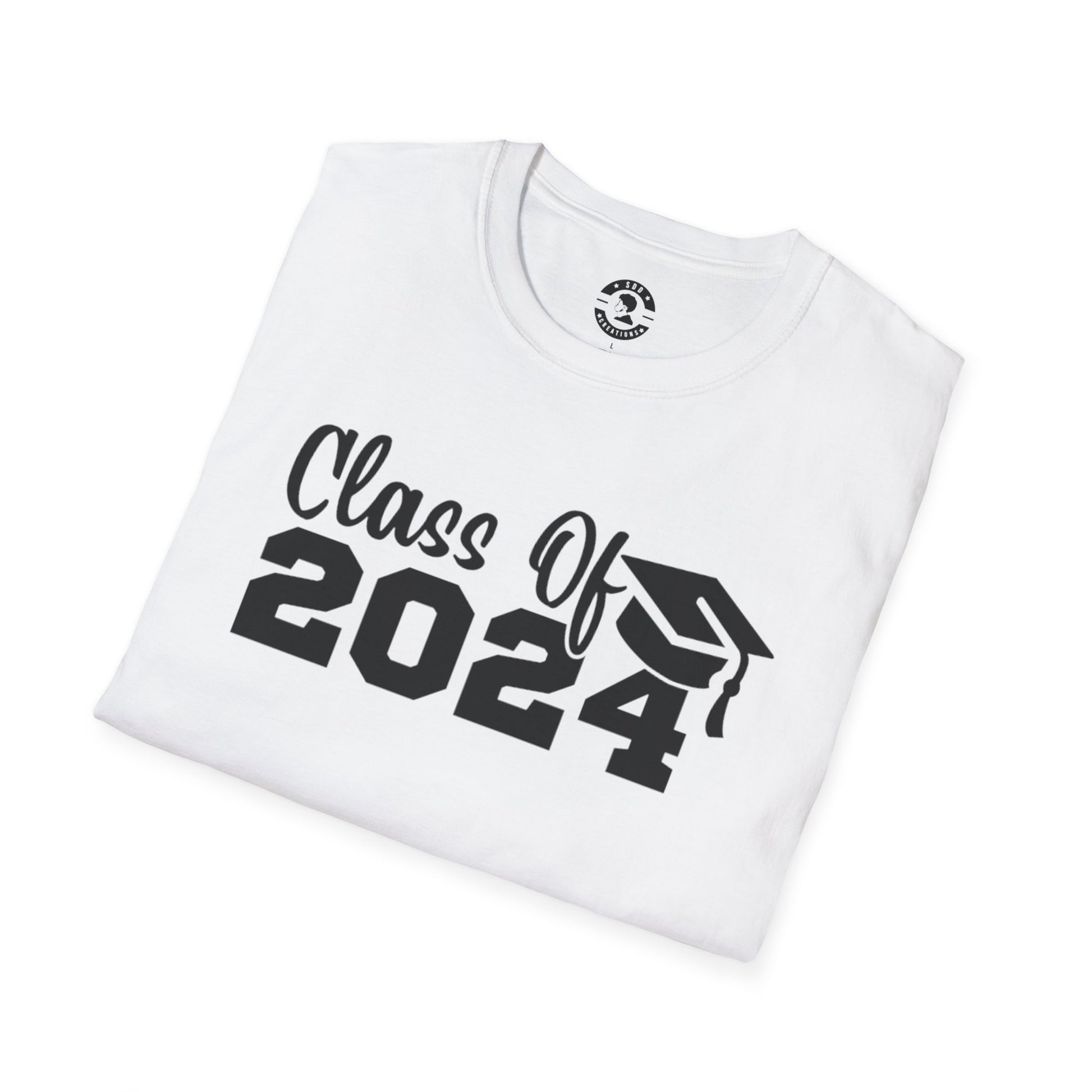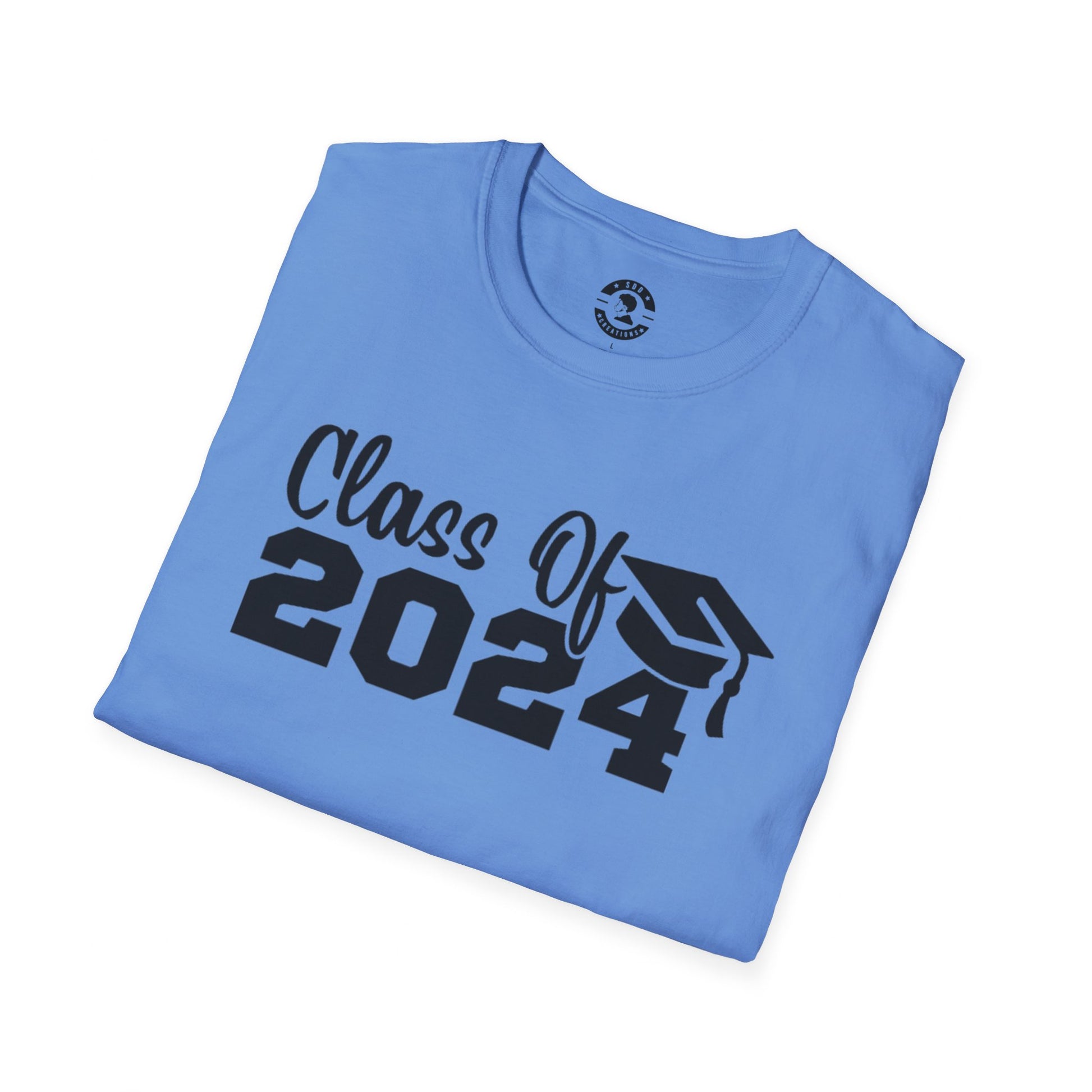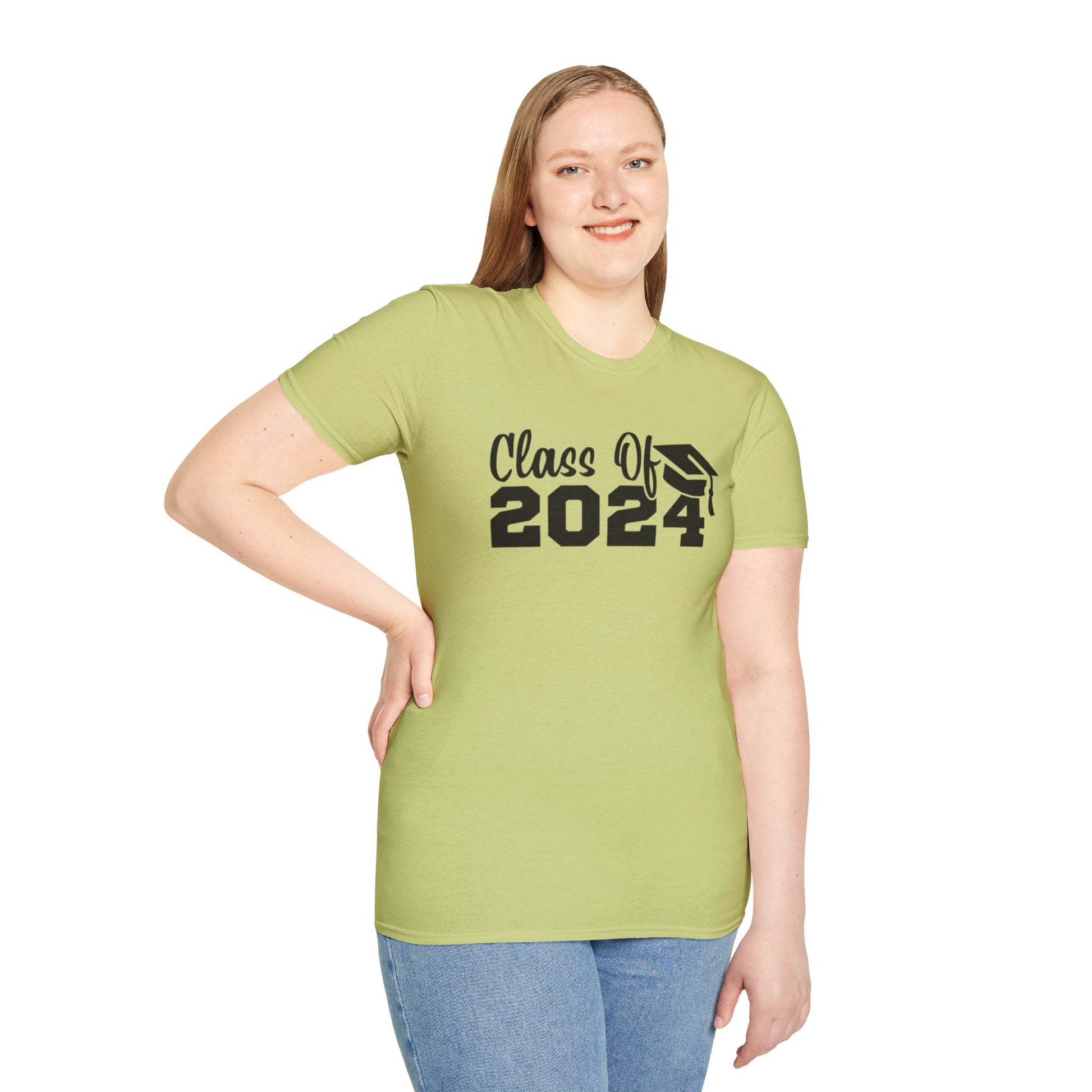 This "Class of 2024" unisex soft-style t-shirt wears all year round with casual comfort. Made from 100% cotton, a classic fit with the crew neckline. Show your celebration as a class of 2024 graduate.