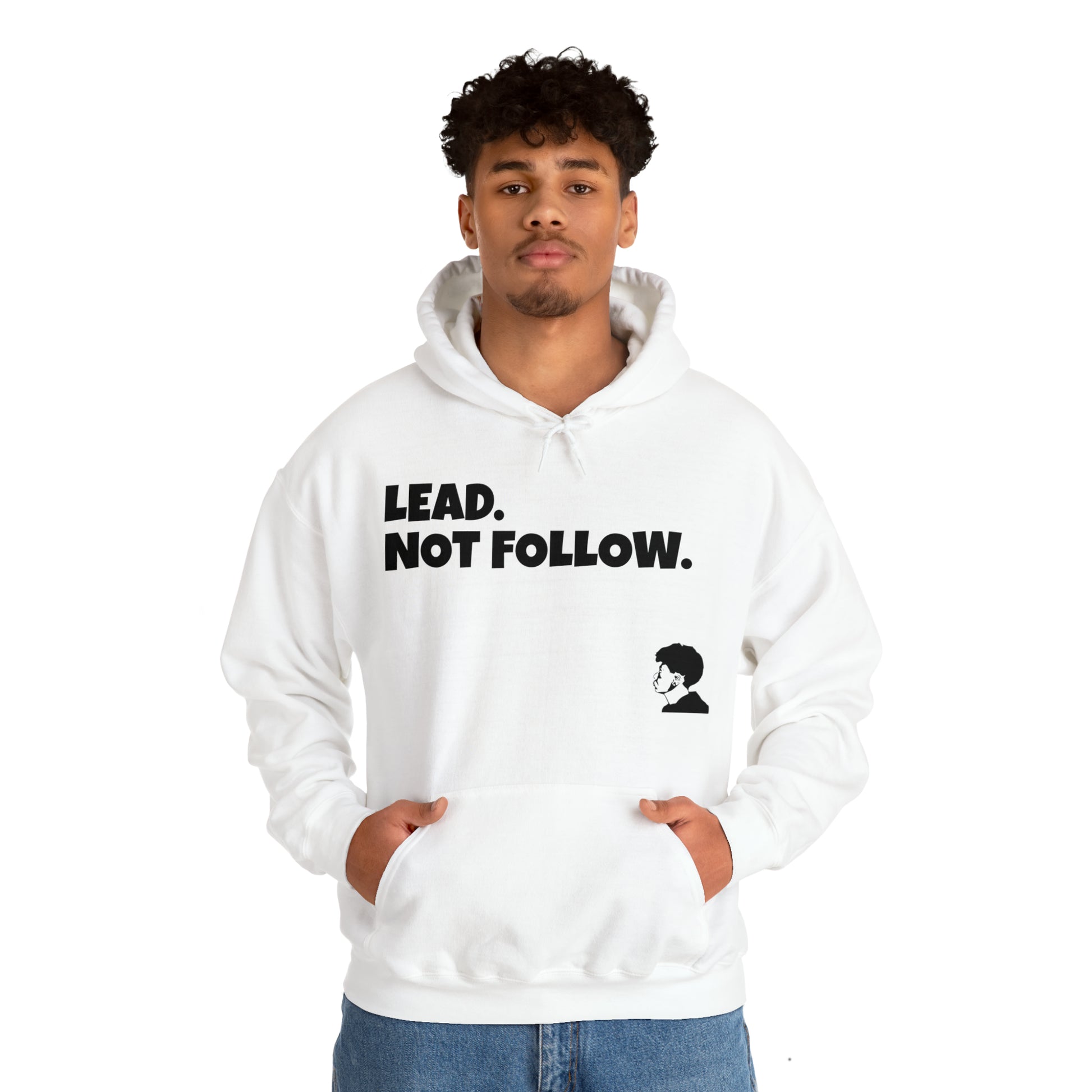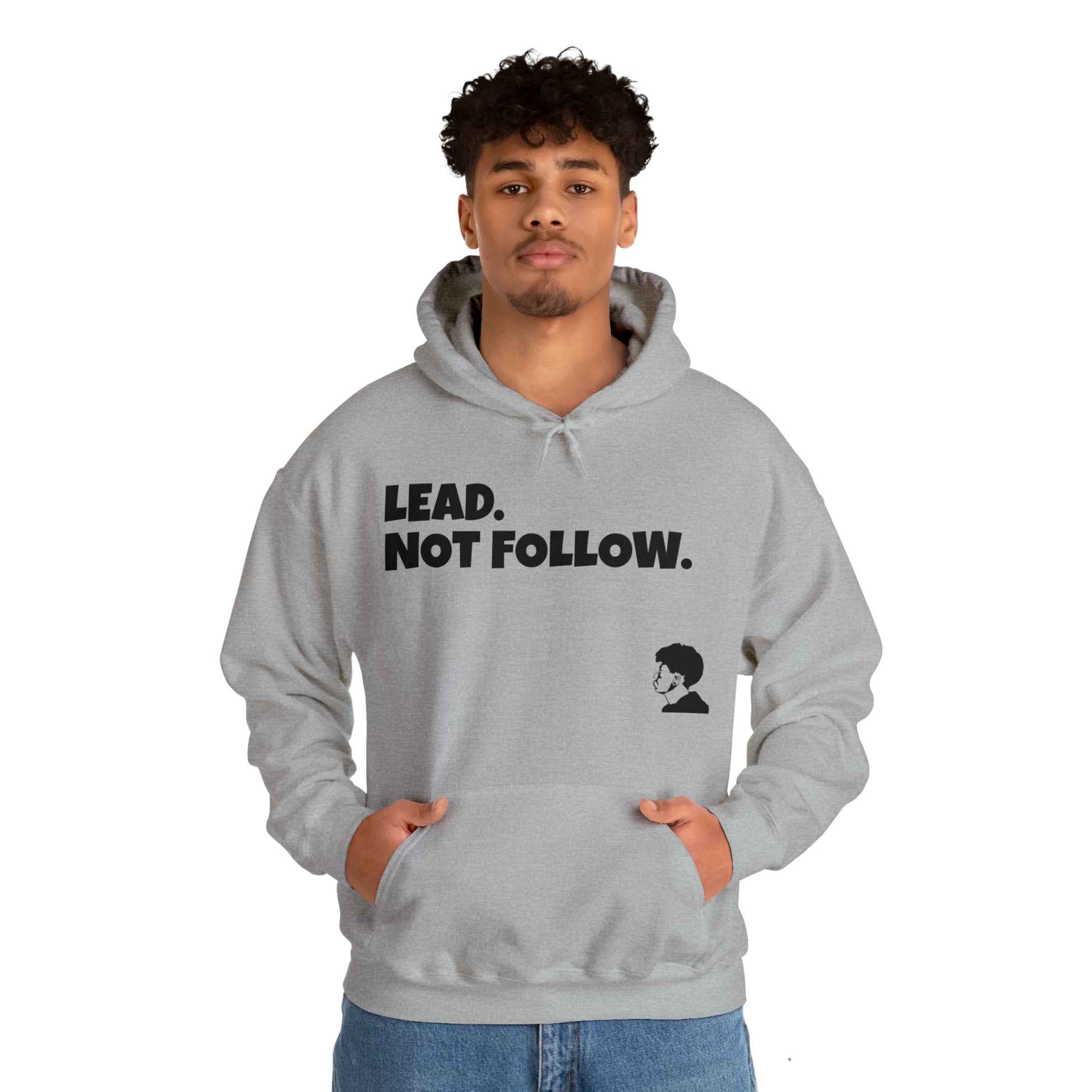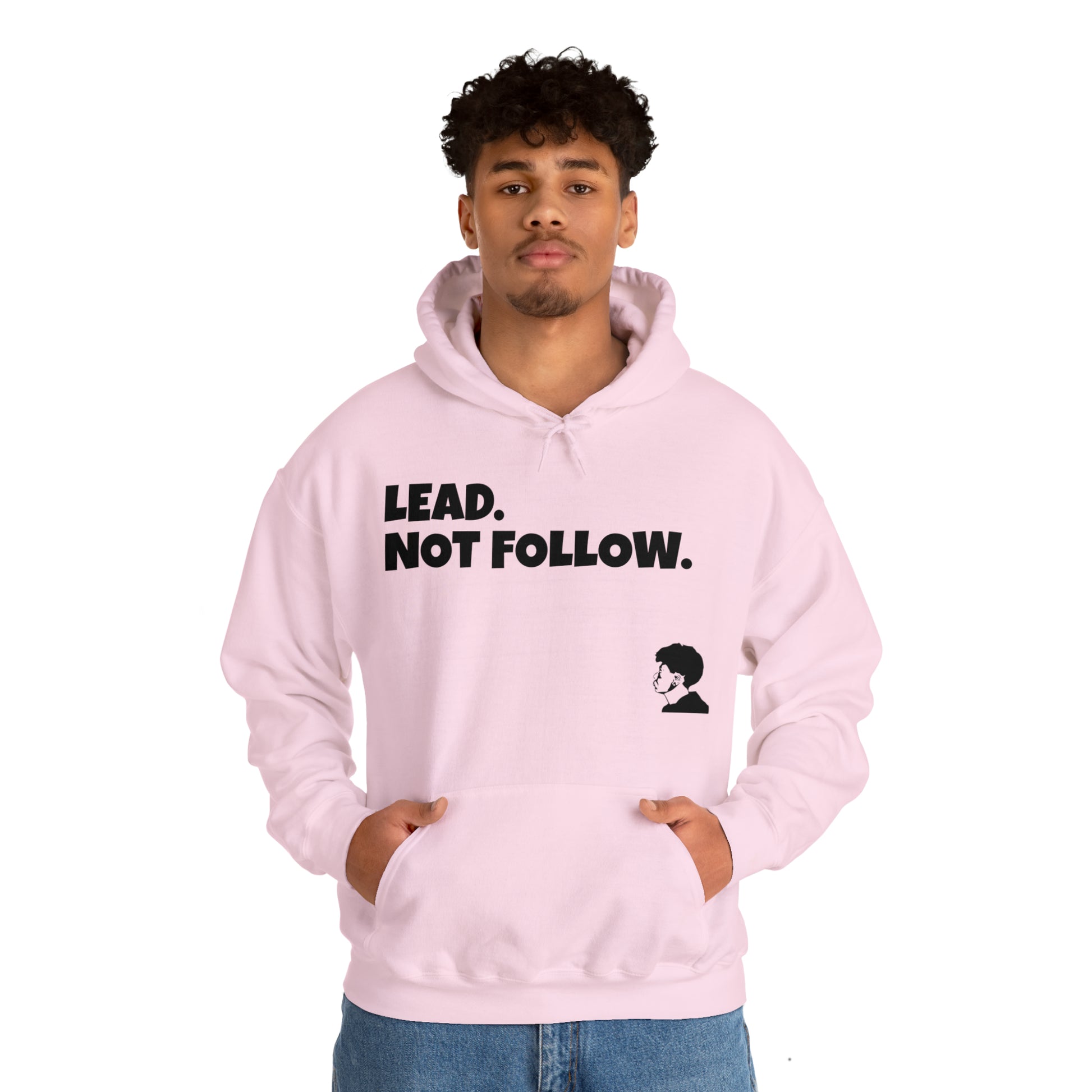 Be a leader and not a follower. This unisex Heavy Blend™ hoodie is made with a thick blend of cotton and polyester. Spacious pocket that keeps your hands warm while you represent. Available is different colors and sizes, Classic fit, Runs true to size.