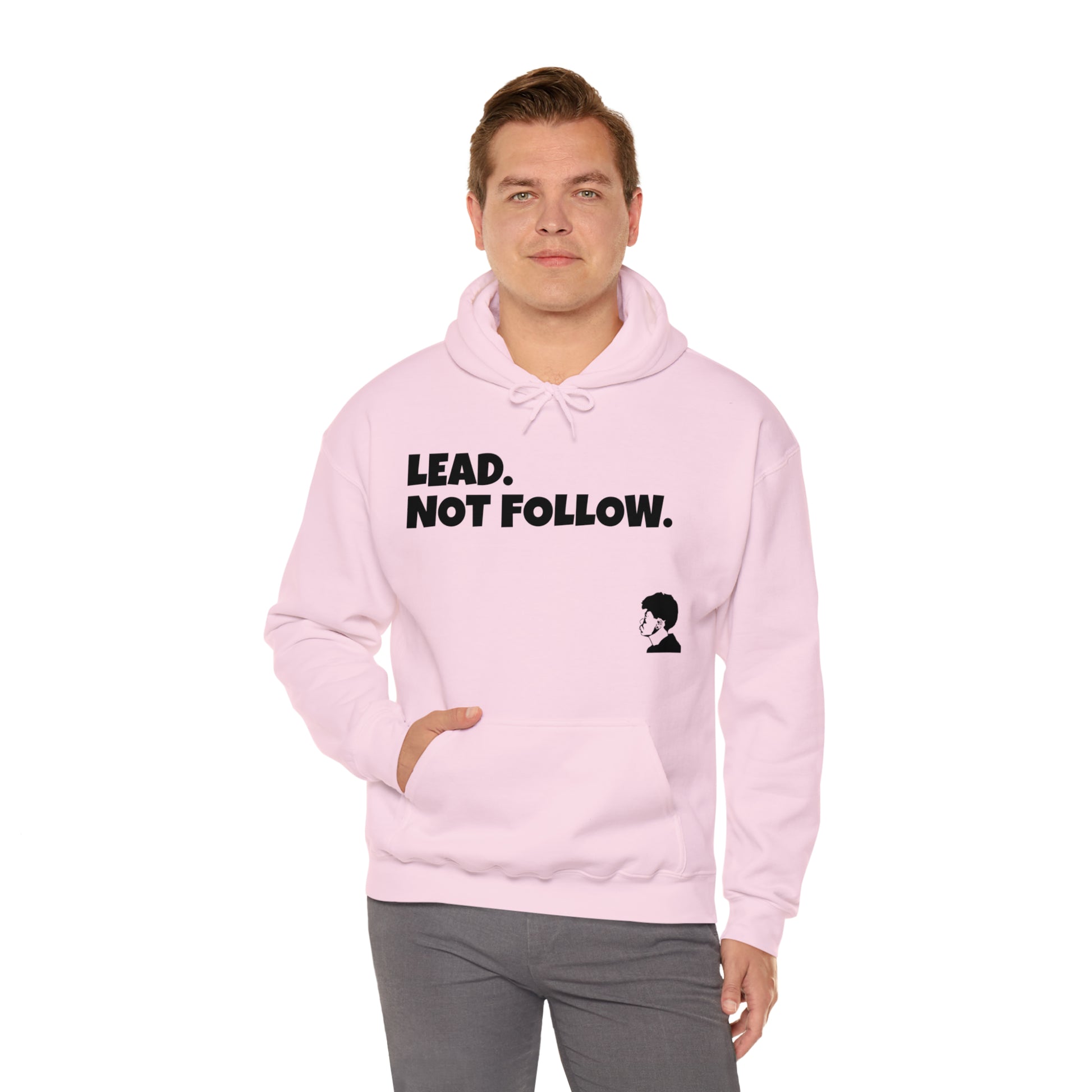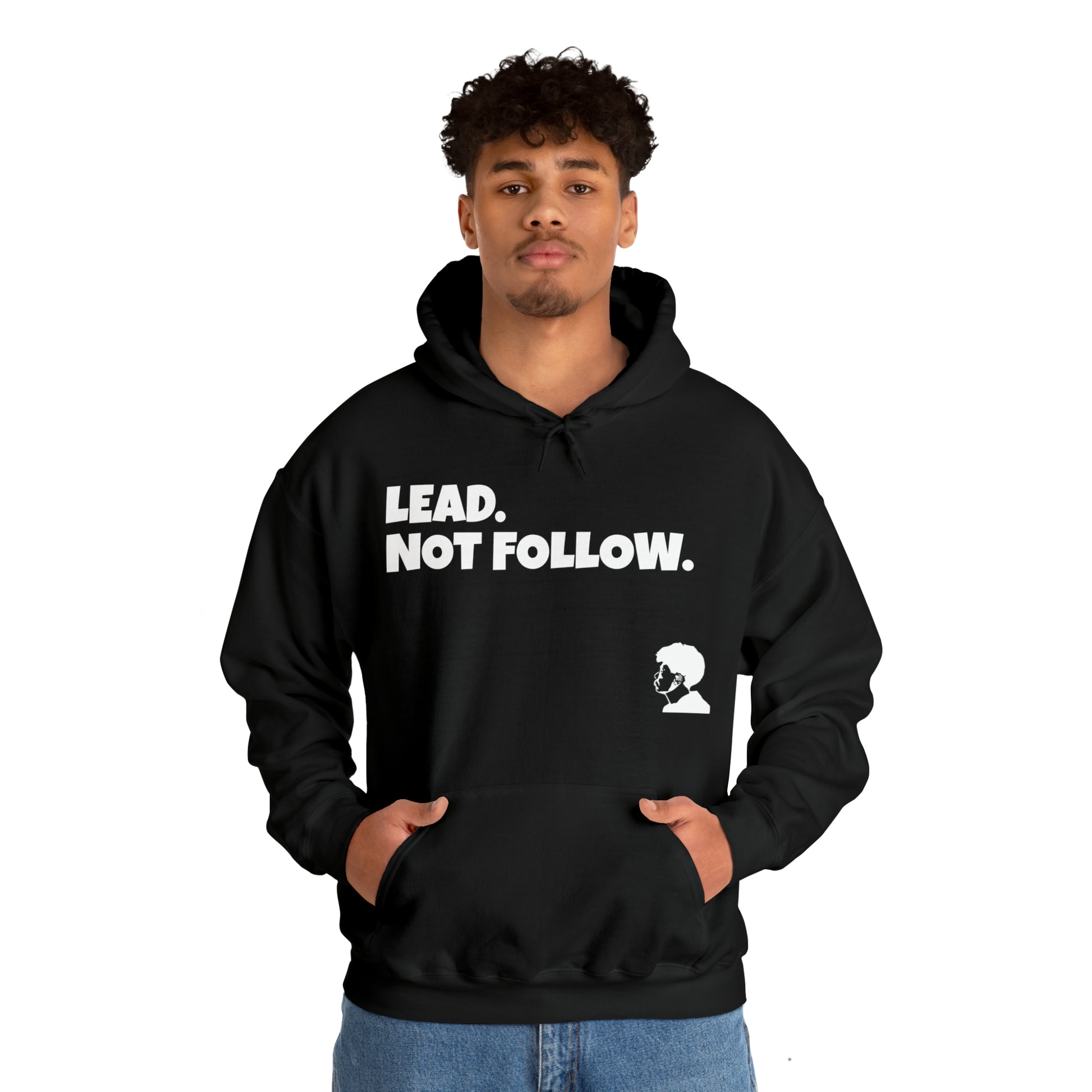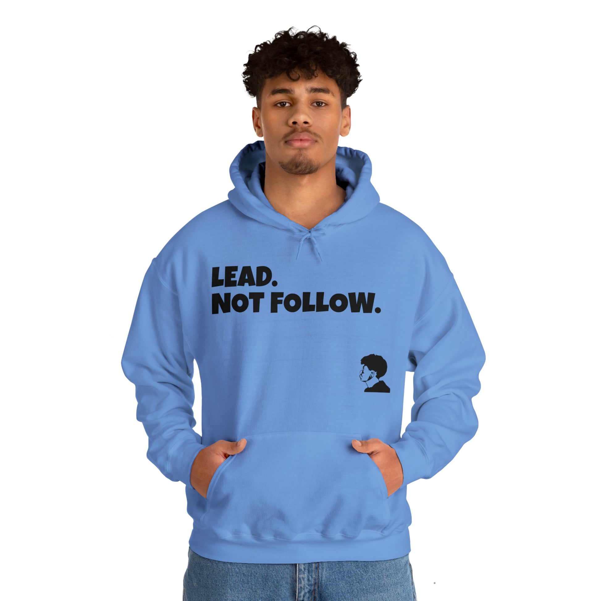 Be a leader and not a follower. This unisex Heavy Blend™ hoodie is made with a thick blend of cotton and polyester. Spacious pocket that keeps your hands warm while you represent. Available is different colors and sizes, Classic fit, Runs true to size.