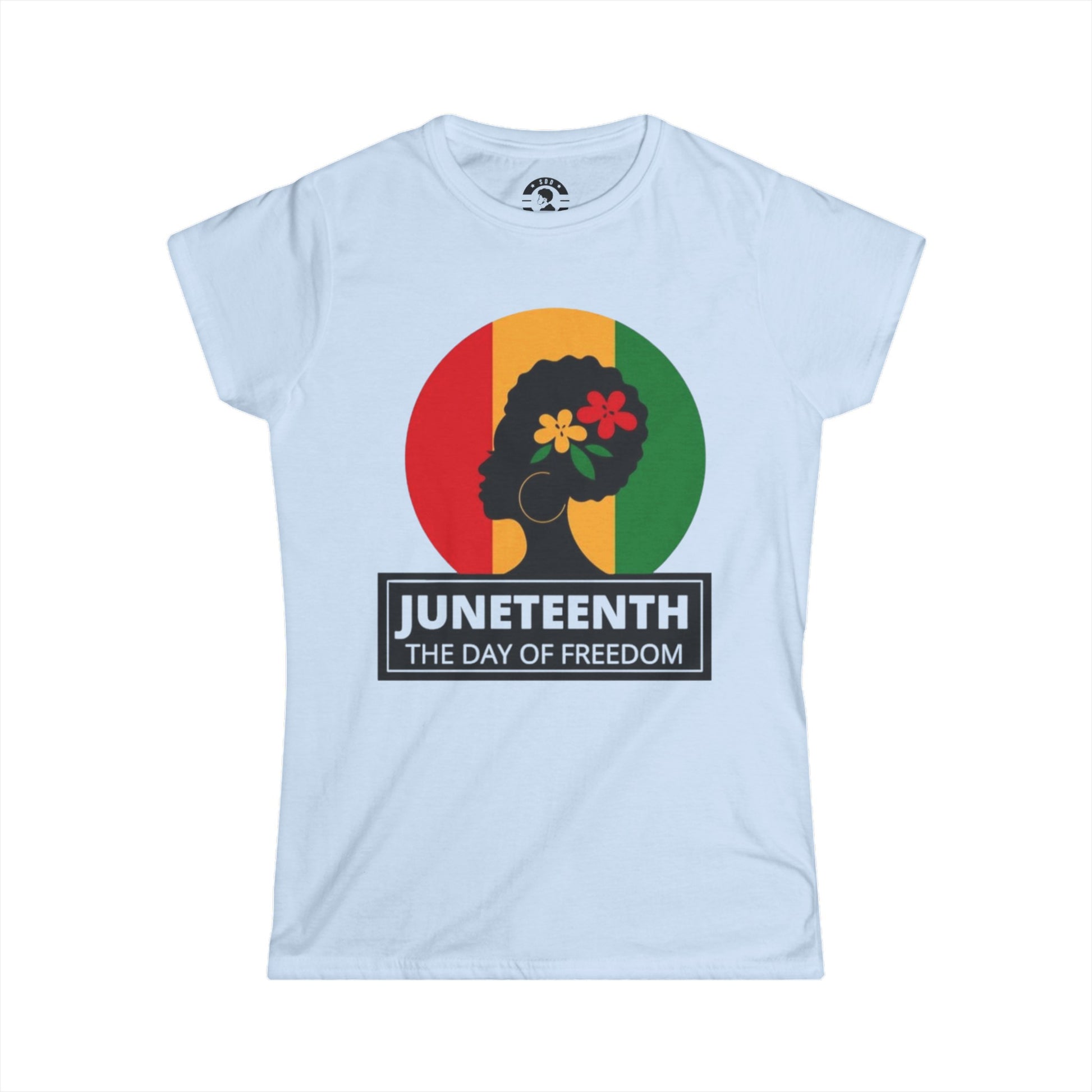 Our woman's Juneteenth softstyle tee is a more feminine take on the classic tee. The sleeves are shortened to reveal some shoulder. The fabric is 100% cotton for all solid colors. Show your support of freedom day in style. Runs true to size.
